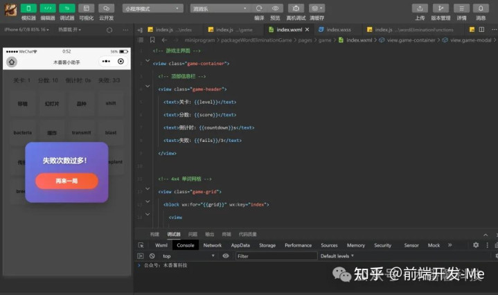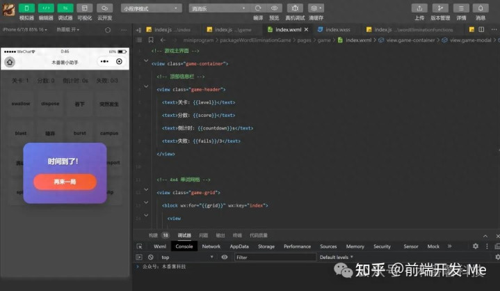 2、数据驱动视图:小程序的逻辑层(JS)管理游戏状态(网格数据、分数、关卡信息等),通过 setData将变化的数据同步到视图层(WXML),或直接驱动 Canvas 绘制。