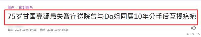 11月4号,据港媒消息称,知名艺人甘国亮疑似患上失智症,在其寓所内被警察带走前往医院接受治疗。