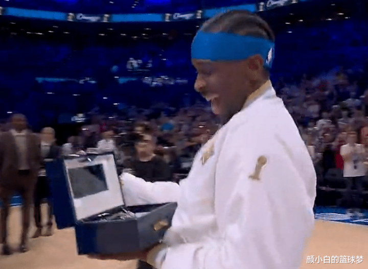 SGA领取了自己的戒指,随后SGA就迈着嚣张的步伐有些小舞蹈那个意思,SGA是上赛季的MVP+FMVP,他是最开心、最兴奋的那个。