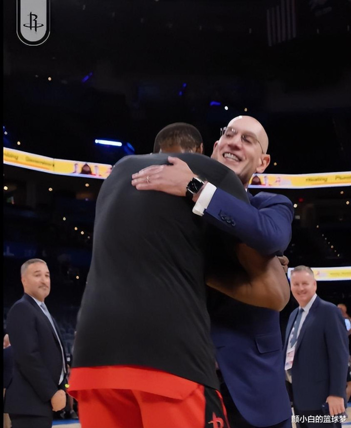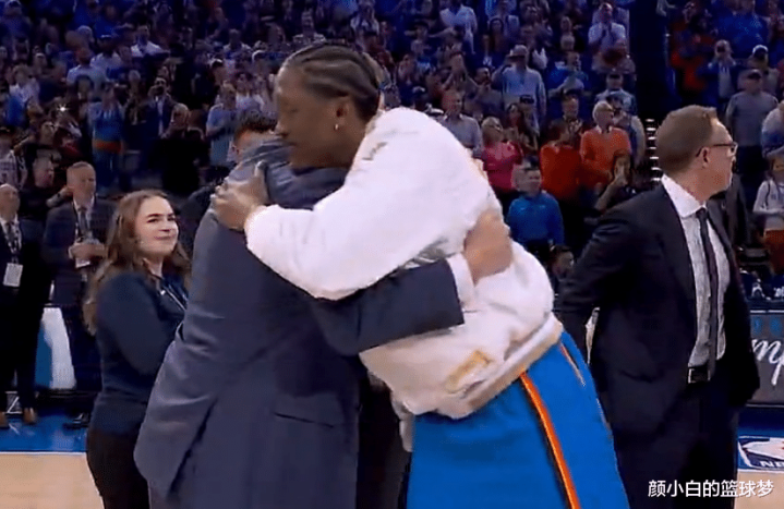 在颁奖仪式开始之前,火箭新援凯文-杜兰特与亚当-萧华进行了拥抱,杜兰特也在雷霆颁奖仪式开始前已经离场。