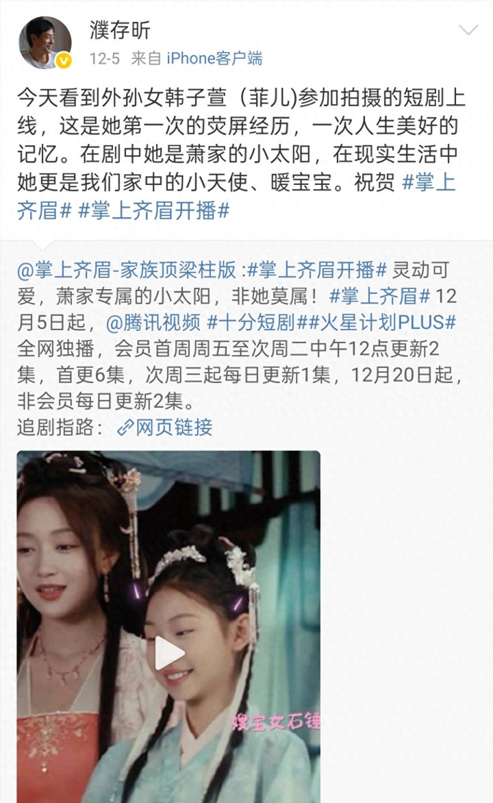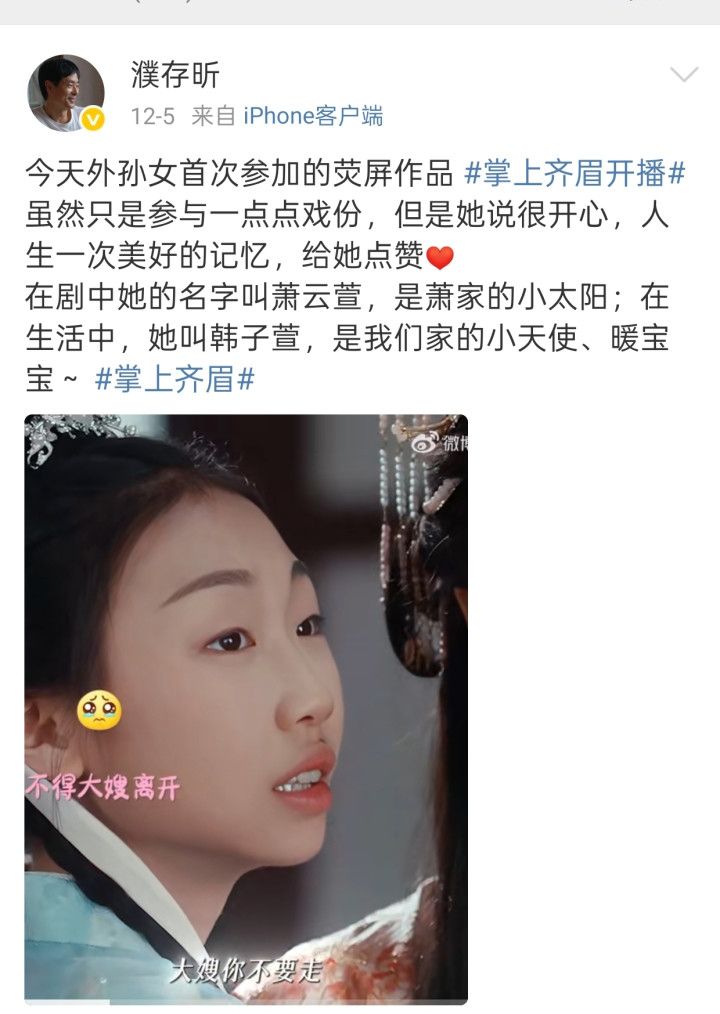 近日,罕见在社交平台上发动态的老戏骨濮存昕居然一连发了好几条微博,只为了替自己外孙女韩子萱出道铺路,然而当网友们看了韩子萱的长相和演技后,都忍不住吐槽:“太丑了!”