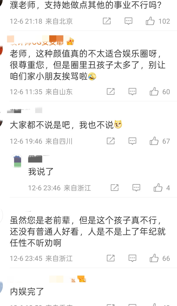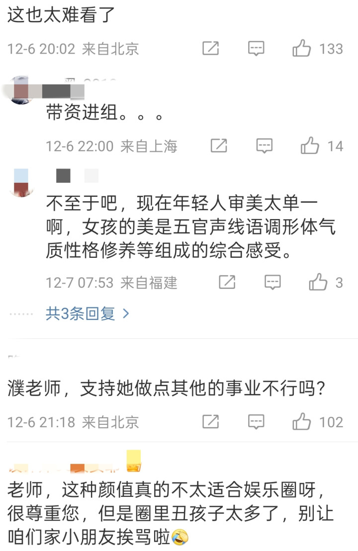 不过网友们对于濮存昕的夸赞和力荐是一点儿都不买账,原因很简单,那就是韩子萱长得太丑了。